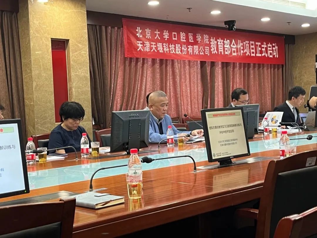 2023年4月24日,在这个春光明媚的日子里,北京大学口腔医院(北大口腔)与星空平台(天堰科技)召开“虚拟仿真在教学实习口腔局部麻醉训练与评估中的开发应用”项目启动会。北大口腔副院长李铁军、中华口腔医学会副秘书长刘宏伟、北大口腔教育处长董美丽、虚拟仿真教研室主任侯建霞、口腔颌面外科副主任贺洋、天堰科技总经理刘雁飞、天堰科技口腔事业部总经理景颖等人出席,在项目总负责人崔念晖主任主持下,双方展开了热烈而有成效的会晤,确定该项目正式启动。